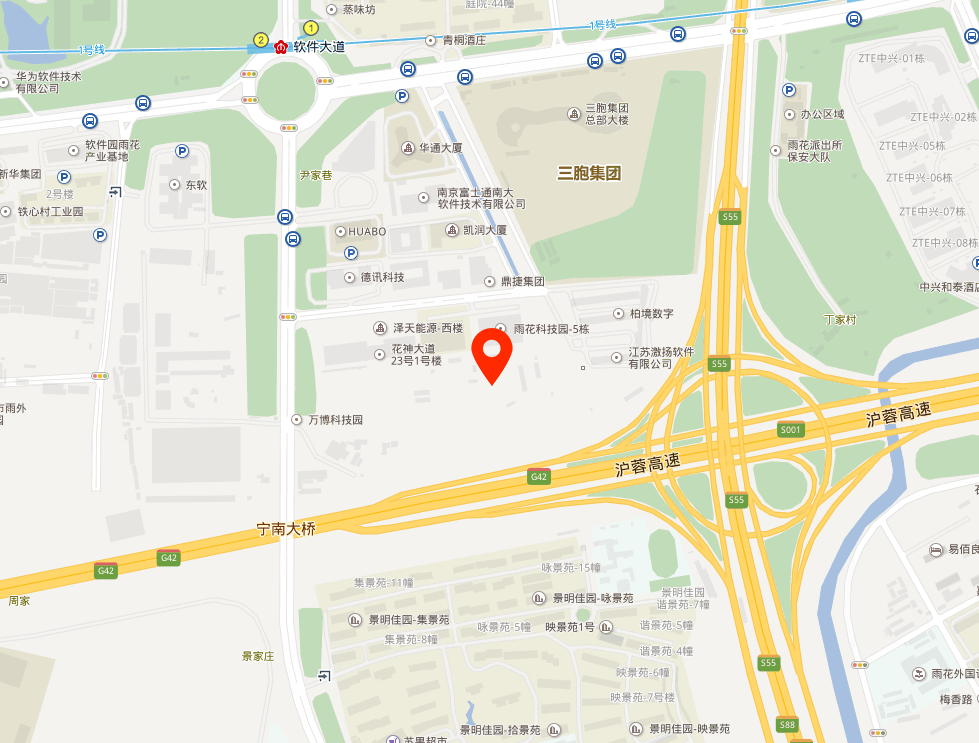 项目位于南京市雨花台区软件谷文竹路与凤信路交汇处,距离地铁1号线软件大道站仅500米,距离南京南站车程9分钟,距离䘵口机场车程25分钟,临邻绕城高速、软件大道及花神大道等多条主干道,快速畅达市中心区。项目周边聚集华为、中兴、三胞等为代表的高端領先上市公司,中国硅谷高科技产业氛围成熟,科技软件产业链完善,产业对接资源丰富、便捷与高效。